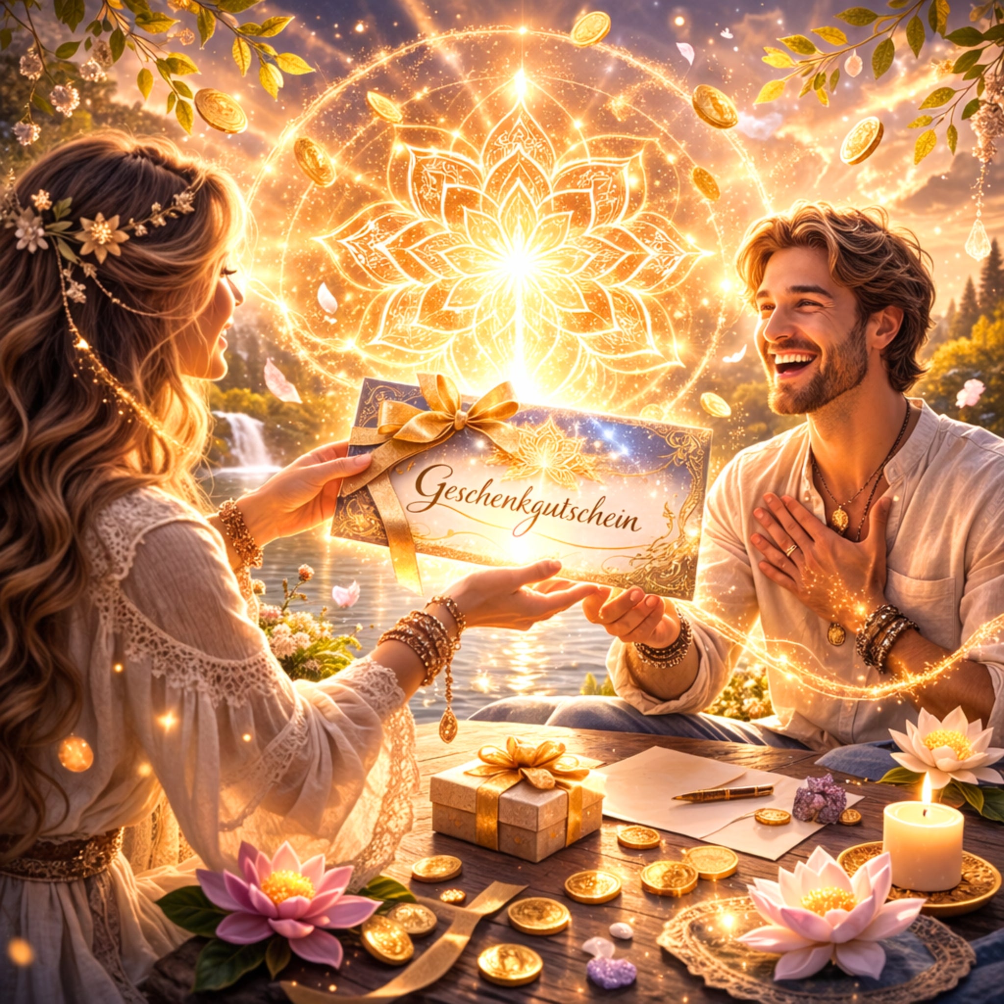 Zum GeschenkgutscheinMit diesem einzigartigen Geschenk hast Du die Möglichkeit, spirituelle Erfahrungen und Abenteuer in den grauen Alltag zu bringen und einem besonderen Menschen eine große Freude zu bereiten.